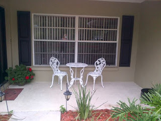 My mom picked up this adorable bistro set for our front porch. Now I can sit out by the garden pond and read and drink my tea.