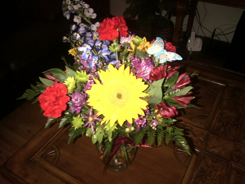 Then today I just received these MAGNIFICENT flowers from my Super Terrific Not-So-Secret-Anymore Pal! WOW! Are they pretty!!