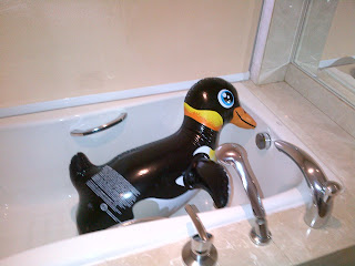Here we have Mr. Penguin in the tub...