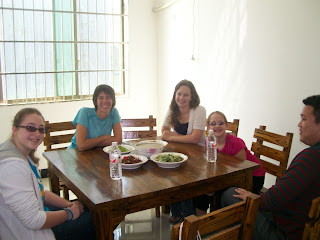 Lunch with the orphanage director, as guests at the orphanage. Blue shirt is Alison, a lovely physical therapist from the UK who has been with ICC for many years. White sweater is Catherine, one of the ICC nurses who used to be with Butterfly Home. Both of these ladies love the children SOOOO much and are an intricate part of their well being both physically and emotionally.